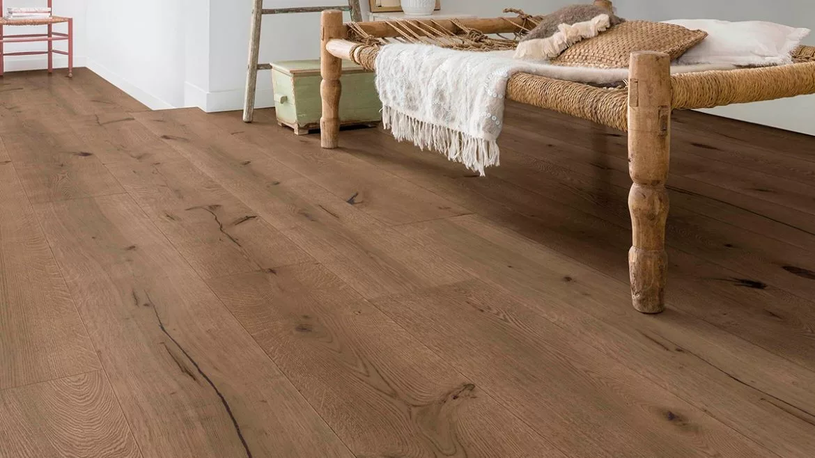 Tus lugares de descanso, de compartir charlas y momentos cotidianos y también de disfrutar sentado a la mesa tienen que ser confortables y lo natural, aunque no es nada nuevo, este año está en lo más alto de ranking de decoración de interiores. No solo señalamos muebles sino también tejidos y objetos de uso diario, pero todos ellos asentados sobre un buen suelo en el que destaque la autenticidad y la artesanía de la madera auténtica. En Quick Step Barcelona los suelos de parquet la aportan. Hay varios entre los que elegir, pero te sugerimos uno muy exclusivo, que, a la naturalidad, añade algo especial: un efecto de amplitud y exclusividad.