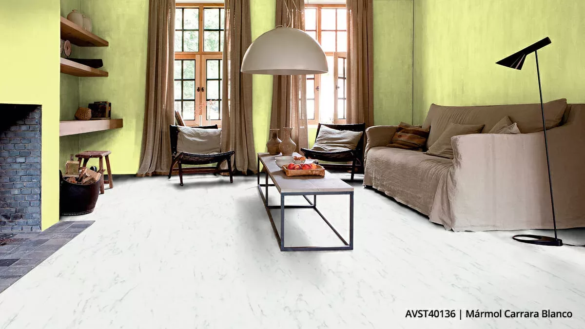 Mármol, oro, terciopelo, artesanal… La estética lujosa ha llegado para quedarse, así como los materiales de alta calidad. Por ejemplo, el mármol sigue siendo muy popular para suelos, encimeras de cocina y accesorios. Se puede combinar con un suelo de roble premium y claro para aportar un toque extralujoso. Y el modelo Alpha Vinyl Botánico beige -AVMP40236- de planchas medianas es todo un ejemplo de ello.